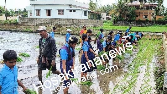 ಕೋಟ – ಭತ್ತದ ಗದ್ದೆಯಲ್ಲಿ ವಿದ್ಯಾರ್ಥಿಗಳ ನಾಟಿ ಕಲರವ