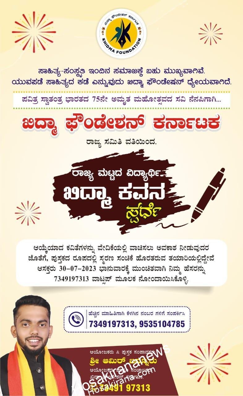 ಖಿದ್ಮಾ ವಿದ್ಯಾರ್ಥಿ ಕವನ ಸ್ಪರ್ಧೆಗೆ ಕವನಗಳ ಆಹ್ವಾನ