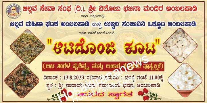 ಆ.13: ಬಿಲ್ಲವ ಸೇವಾ ಸಂಘ(ರಿ.) ಅಂಬಲಪಾಡಿ, ಬಿಲ್ಲವ ಮಹಿಳಾ ಘಟಕ ಮತ್ತು ಉಜ್ವಲ ಸಂಜೀವಿನಿ ಒಕ್ಕೂಟದ ಸಹಯೋಗದಲ್ಲಿ ‘ಆಟಿಡೊಂಜಿ ಕೂಟ’ ಬಿಲ್ಲವ ಸೇವಾ ಸಂಘ (ರಿ.), ಶ್ರೀ…