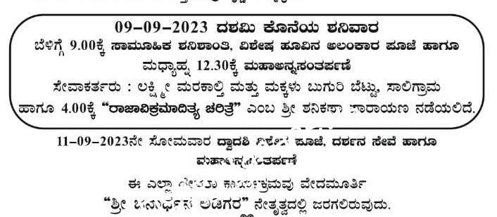 ಕೋಟ ಶಾಂತಮೂರ್ತಿ ಶ್ರೀ ಶನೀಶ್ವರ ದೇವಸ್ಥಾನ: ಸೆ.9 ರಂದು ಸಾಮೂಹಿಕ ಶನಿಶಾಂತಿ ಮತ್ತು ಶ್ರೀ ಶನಿಕಥಾ ಪಾರಾಯಣ ನಡೆಯಲಿದೆ.