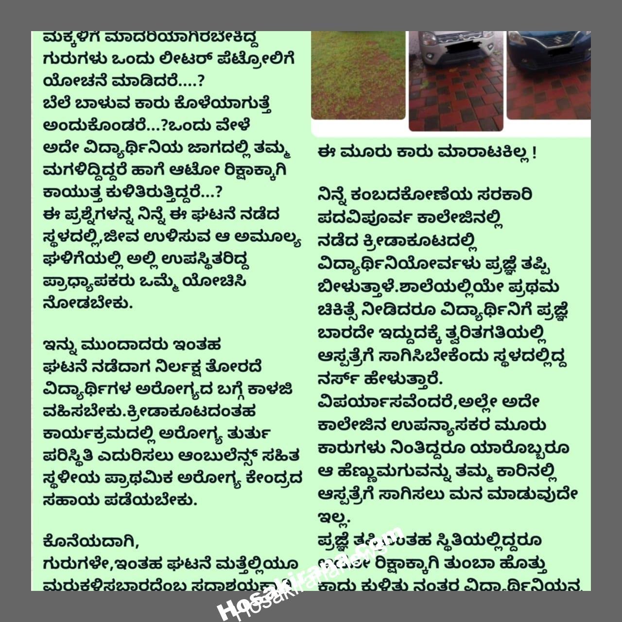ಬೈಂದೂರು: ತಾಲೂಕಿನ ಕಂಬದಕೋಣೆಯ ಸರಕಾರಿ ಪದವಿಪೂರ್ವ ಕಾಲೇಜಿನಲ್ಲಿ ನಡೆದ ಕ್ರೀಡಾಕೂಟದಲ್ಲಿ ವಿದ್ಯಾರ್ಥಿನಿಯೋರ್ವಳು ಪ್ರಜ್ಞೆ ತಪ್ಪಿ ಅಸ್ವಸ್ಥರಾಗಿ ಬೀಳುತ್ತಾಳೆ. ಶಾಲೆಯಲ್ಲಿಯೇ ಪ್ರಥಮ ಚಿಕಿತ್ಸೆ ನೀಡಿದರೂ ವಿದ್ಯಾರ್ಥಿನಿಗೆ ಪ್ರಜ್ಞೆ ಬಾರದ…