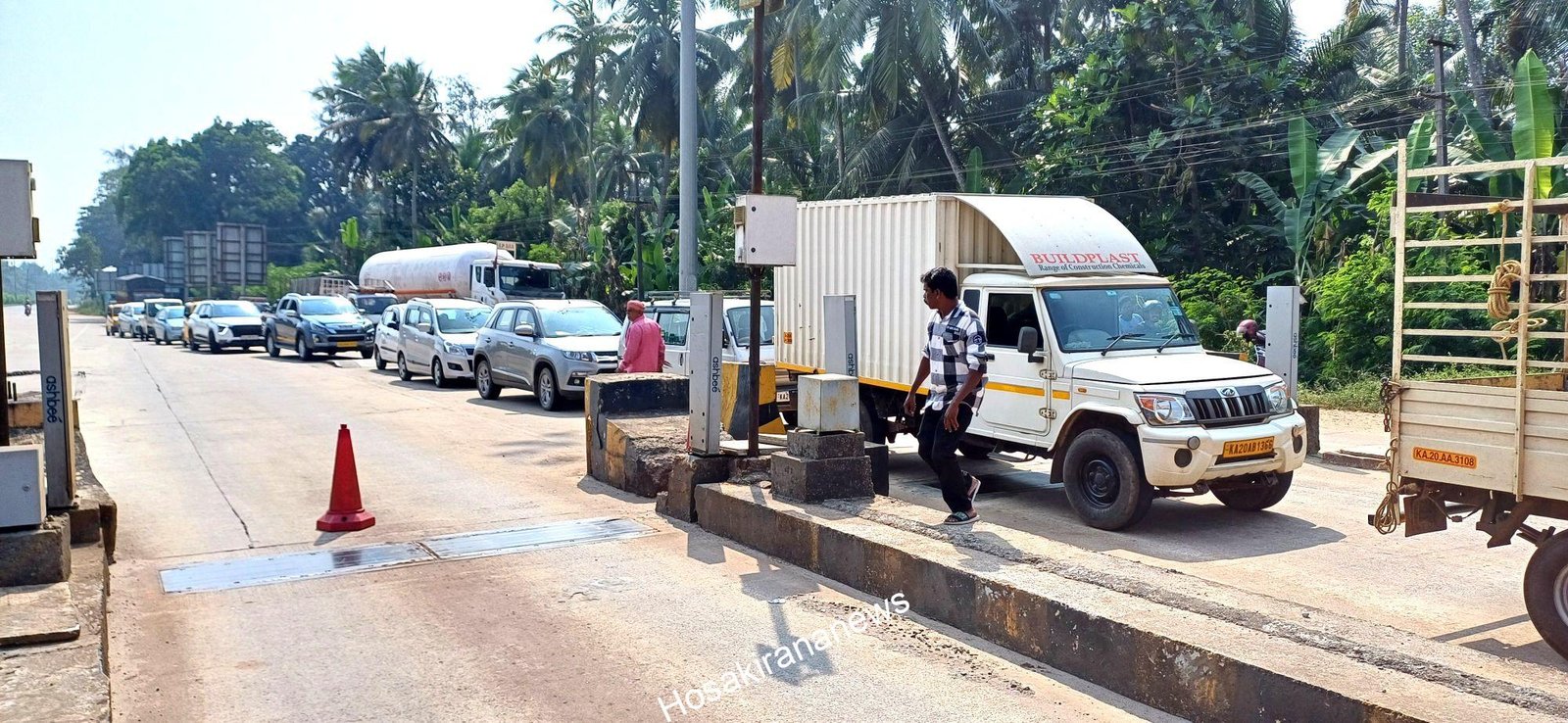 ಗುರುವಾರ ರಾತ್ರಿಯಿಂದಲೇ ಕಮರ್ಷಿಯಲ್ ವಾಹನ (ಹಳದಿ ನಂಬರ್ ಪ್ಲೇಟ್ ) ಹೊಂದಿದ ಸ್ಥಳೀಯ ವಾಹನಗಳಿಗೆ ದಿಢೀರ್ ಟೋಲ್ ವಸೂಲಾತಿಯ ಹಿನ್ನಲ್ಲೆಯಲ್ಲಿ ಶುಕ್ರವಾರ ಅಪರಾಹ್ನದಿಂದ ಟೋಲ್ ಬಳಿಬಾರಿ ಸಂಖ್ಯೆಯಲ್ಲಿ ಸ್ಥಳೀಯ ವಾಹನಗಳು ಟೋಲ್ ಪ್ಲಾಜಾಕ್ಕೆ ಅಡ್ಡ ಇಡಿಸಿ ಪ್ರತಿಭಟನೆ ನಡೆಸಿದವು.