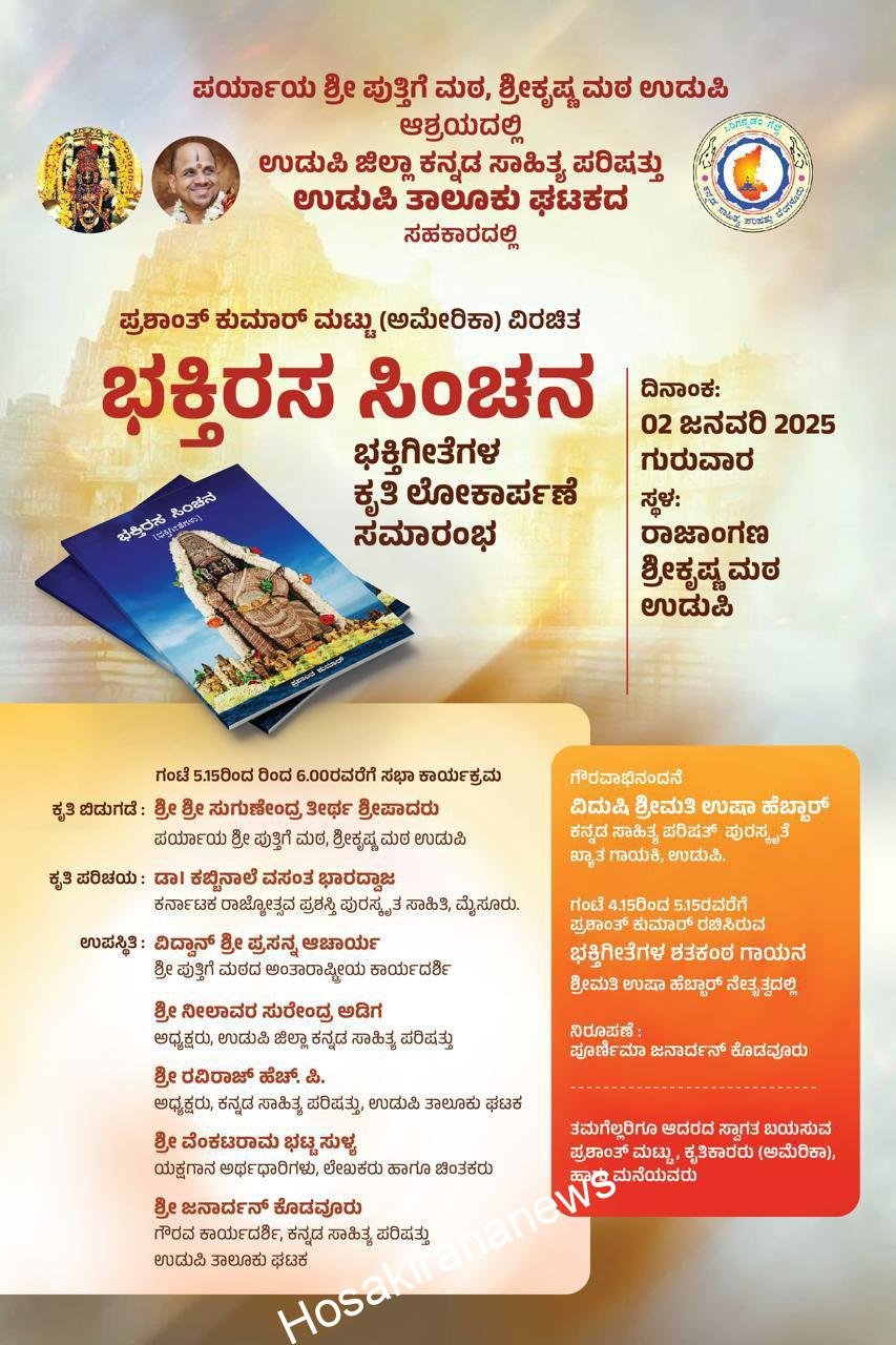 ಪರ್ಯಾಯ ಶ್ರೀ ಪುತ್ತಿಗೆ ಮಠ, ಶ್ರೀಕೃಷ್ಣ ಮಠ ಉಡುಪಿ ಆಶ್ರಯದಲ್ಲಿ ಉಡುಪಿ ಜಿಲ್ಲಾ ಕನ್ನಡ ಸಾಹಿತ್ಯ ಪರಿಷತ್ತು ಉಡುಪಿ ತಾಲೂಕು ಘಟಕದ ಸಹಕಾರದಲ್ಲಿ ಪ್ರಶಾಂತ್ ಕುಮಾರ್ ಮಟ್ಟು…