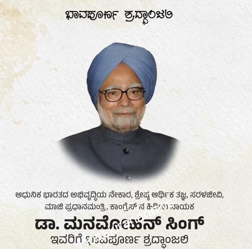 ನವದೆಹಲಿ: ಮಾಜಿ ಪ್ರಧಾನಿ ಹಾಗೂ ಖ್ಯಾತ ಅರ್ಥಶಾಸ್ತ್ರಜ್ಞ ಮನಮೋಹನ್ ಸಿಂಗ್ (92) ಅವರು ಇಂದು ದೆಹಲಿಯ ಏಮ್ಸ್ ಆಸ್ಪತ್ರೆಯಲ್ಲಿ ನಿಧನರಾದರು. ಆರೋಗ್ಯ ಹದಗೆಟ್ಟಿದ್ದ ಹಿನ್ನೆಲೆಯಲ್ಲಿ ಗುರುವಾರ ಸಂಜೆ…