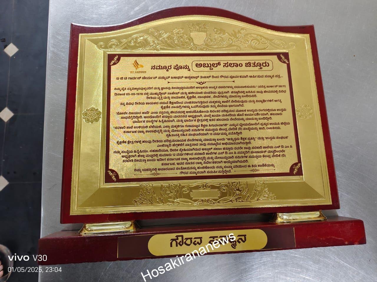 ಕುಂದಾಪುರ ತಾಲೂಕು ಕೋಟೇಶ್ವರದ ಮೂಡು ಗೋಪಾಡಿ ಯಲ್ಲಿರುವ ಐ. ಬಿ. ಟಿ ಗಾರ್ಡನ್ ನಲ್ಲಿ ನಡೆದ ಕಾರ್ಯಕ್ರಮದಲ್ಲಿ ಸರಕಾರಿ ಶಾಲೆಗಳು, ಶಿಕ್ಷಣ ,ಮತ್ತು ಸಾಮಾಜಿಕ ನಾಯಕತ್ವದಲ್ಲಿ ತನ್ನನ್ನು ತೊಡಗಿಸಿ ಕೊಂಡಿರುವ ಎಸ್ ಡಿ ಎಂ ಸಿ ಸಮನ್ವಯ ಕೇಂದ್ರ ವೇದಿಕೆಯ ಉಡುಪಿ ಜಿಲ್ಲಾ ಘಟಕದ ಅಧ್ಯಕ್ಷರು ಕರ್ನಾಟಕ ರಾಜ್ಯ ಶಾಲಾಭಿವೃದ್ಧಿ ಮತ್ತು ಮೇಲುಸ್ತುವಾರಿ ಸಮಿತಿ ಗಳ ಸಮನ್ವಯ ಕೇಂದ್ರ ವೇದಿಕೆಯ ರಾಜ್ಯ ನಿರ್ದೇಶಕರಾಗಿ ಆಯ್ಕೆಯಾದ ಅಬ್ದುಲ್ ಸಲಾಂ ಚಿತ್ತೂರು ರವರನ್ನು ಐ. ಬಿ.ಟಿ ಗಾರ್ಡನ್ ಚೇರ್ಮನ್, ಸುನ್ನಿ ಸಂಘಟನೆಗಳ ಜೀವನಾಡಿ , ಸೈಯದ್ ಜಅಫರ್ ಅಸ್ಸಖಾಫ್ ತಂಘಲ್ ರವರು ,,ನಮ್ಮೂರ ಪೊನ್ನು ,,
