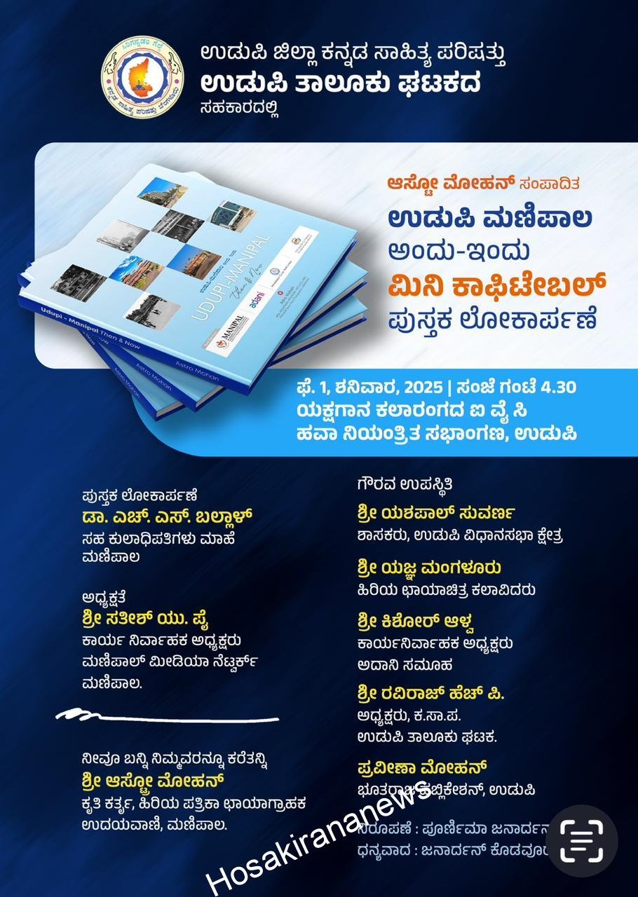 ಉಡುಪಿ, ಮೂರುದಶಕಗಳ ಉಡುಪಿಯ ಪ್ರಗತಿಯ ಕುರಿತಾಗಿ ಚಿತ್ರಗಳ ಮೂಲಕ ಸಾಕ್ಷೀಕರಿಸುವ ವಿಶಿಷ್ಟ ಮಿನಿ ಕಾಫಿ ಟೇಬಲ್ ಬುಕ್ ಫೆ. 1 ರಂದು ಉಡುಪಿಯಲ್ಲಿ ಲೋಕಾರ್ಪಣೆಗೊಳ್ಳಲಿದೆ ಎಂದು ಕನ್ನಡ…