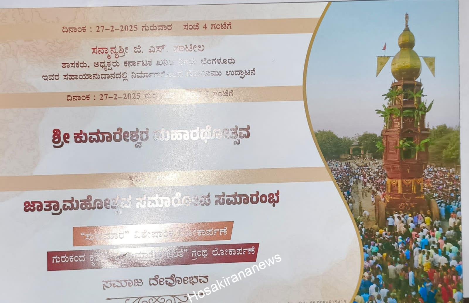 ಬಾದಾಮಿ: ತಾಲೂಕಿನ ಸುಕ್ಷೇತ್ರ ಶಿವಯೋಗಮಂದಿರದ ಶ್ರೀ ಮದ್ವೀರಶೈವ ಸಂಸ್ಥೆಯ ಏಷ್ಯಾಖಂಡದಲ್ಲಿ ಎರಡನೇ ಅತಿ ಎತ್ತರದ (65 ಅಡಿ) ಶ್ರೀ ಕುಮಾರೇಶ್ವರರ ಮಹಾರಥೋತ್ಸವ ಇಂದು(ಫೆ.27) ಗುರುವಾರ ಸಂಜೆ 5…