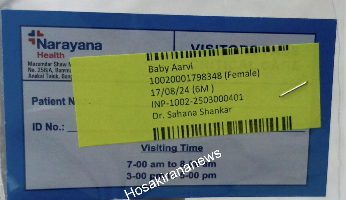 ಬೇಬಿ ಆರ್ವಿ, 6 ತಿಂಗಳ ಹೆಣ್ಣು ಮಗುವಿಗೆ ದೀರ್ಘಕಾಲದ ಯಕೃತ್ತಿನ ಕಾಯಿಲೆಯೊಂದಿಗೆ ಪಿತ್ತರಸ ಅಟ್ರೆಸಿಯಾ ರೋಗ ಪೀಡಿತರಾಗಿದ್ದು, ಯಕೃತ್ತಿನ ವೈಫಲ್ಯವಾಗಿದೆ ಎಂದು ವೈದ್ಯರು ತಿಳಿಸಿದ್ದಾರೆ. ಪಿತ್ತಜನಕಾಂಗದ ಕಸಿ ಈ ಸ್ಥಿತಿಗೆ ರೋಗನಿರೋಧಕ ಚಿಕಿತ್ಸೆಯಾಗಿದೆ ಎನ್ನಲಾಗಿದೆ. ಪಿತ್ತಜನಕಾಂಗದ ಕಸಿ ಚಿಕಿತ್ಸೆಗೆ ಅಂದಾಜು ವೆಚ್ಚ 25,00,000/- ಅಗತ್ಯ ಇರುತ್ತದೆ ಎಂದು ವೈದ್ಯರು ತಿಳಿಸಿರುತ್ತಾರೆ. ಸಹದೃಯಿಗಳು ದಯಮಾಡಿ ಮಗುವಿನ ಜೀವ ಉಳಿಸಲು ಸಹಾಯಹಸ್ತ ನೀಡಬೇಕಾಗಿ ವಿನಂತಿ.