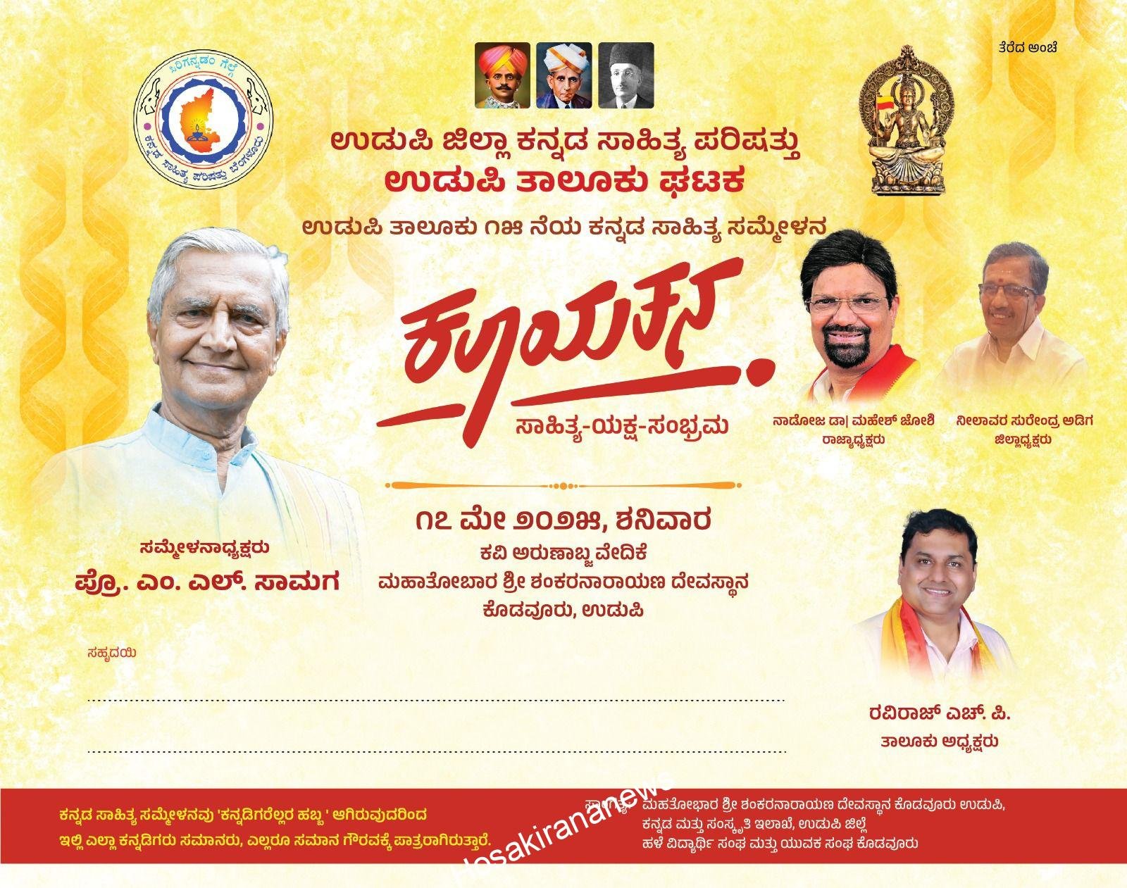 ಉಡುಪಿ ಜಿಲ್ಲಾ ಕನ್ನಡ ಸಾಹಿತ್ಯ ಪರಿಷತ್ತು ಉಡುಪಿ ತಾಲೂಕು ಘಟಕದ ೧೫ನೇ ಕನ್ನಡ ಸಾಹಿತ್ಯ ಸಮ್ಮೇಳನ “ಕಲಾಯತನ” ದಿನಾಂಕ:೧೭. ೦೫, ೨೦೨೫ “ಉಚಿತ ಕಣ್ಣು, ಕಿವಿ ,ಮೂಗು…