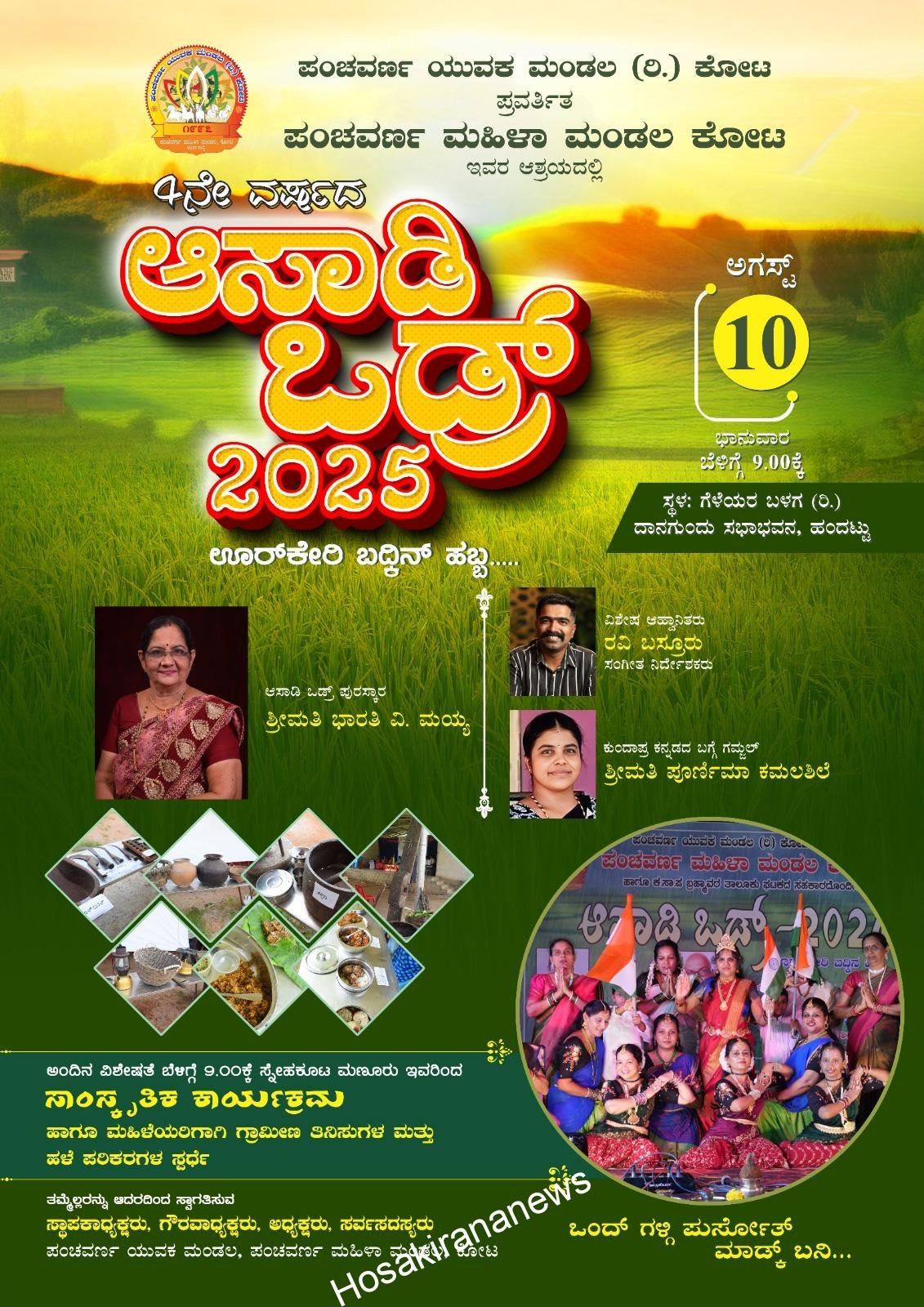 ಕೋಟ: ಕೋಟದ ಪಂಚವರ್ಣ ಮಹಿಳಾ ಮಂಡದ ನೇತೃತ್ವದಲ್ಲಿ ಮಾತೃಸಂಸ್ಥೆ ಪಂಚವರ್ಣ ಯುವಕ ಮಂಡಲ ಕೋಟ ಇದರ ಮಾರ್ಗದರ್ಶನದಲ್ಲಿ ಪ್ರತಿವರ್ಷ ಹಂದಟ್ಟು ಗೆಳೆಯರ ಬಳಗ ಸಭಾಂಗಣದಲ್ಲಿ ನಡೆಸಲ್ಪಡುವ ಆಸಾಡಿ…