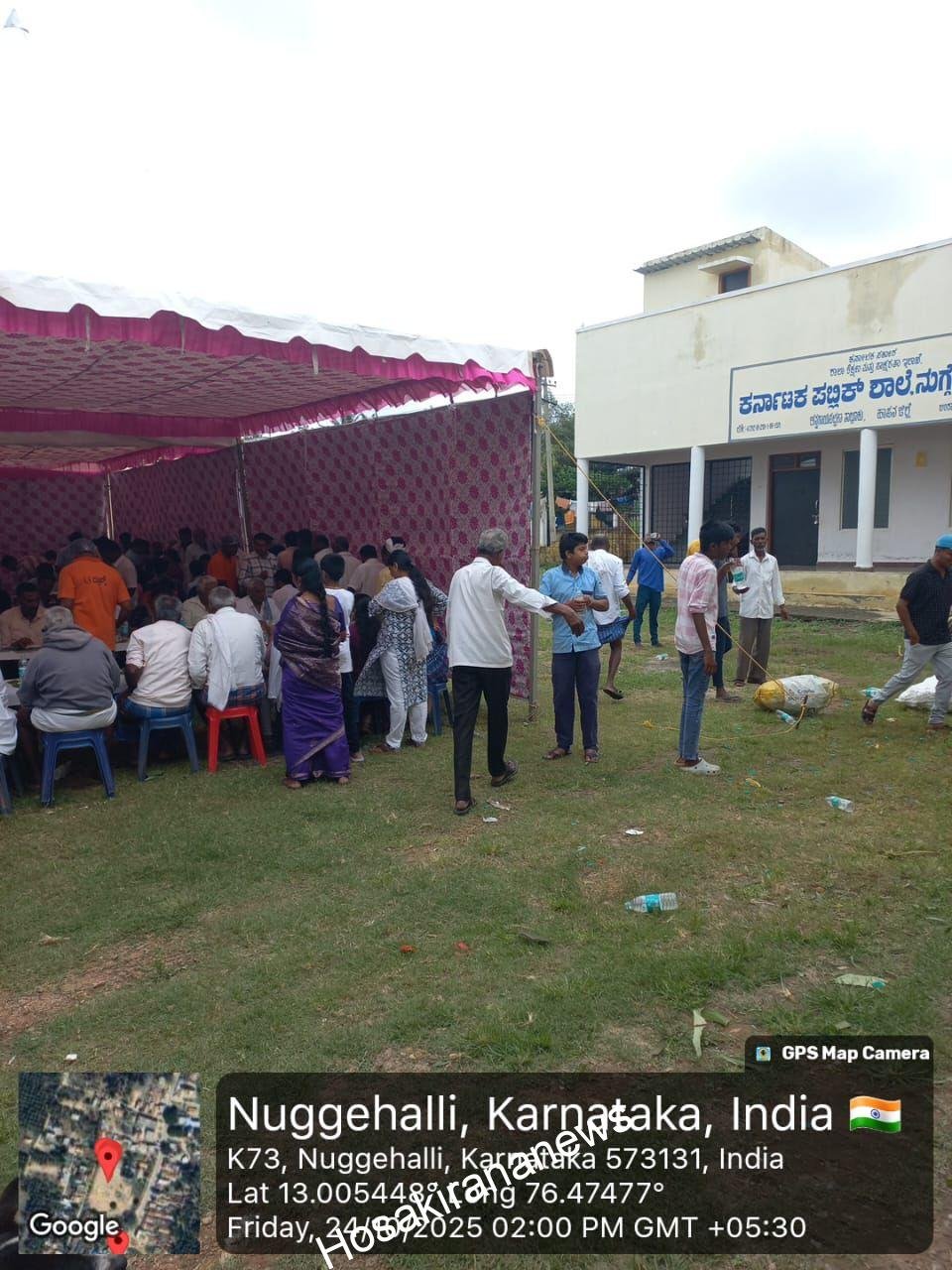 ಹಾಸನ ಜಿಲ್ಲೆಯ ಚನ್ನರಾಯಪಟ್ಟಣ ತಾಲೂಕಿನ ನುಗ್ಗೆಹಳ್ಳಿ ಕೆ ಪಿ ಎಸ್ ಶಾಲೆಯ ಆವರಣದ ಒಳಗೆಯೇ ಗೃಹ ಪ್ರವೇಶ ಕಾರ್ಯಕ್ರಮ